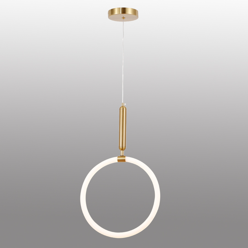 LED Pendant light, consist of a iron metal ring and a circle ring .The light is 30cm in diameter, made of silicone acrylic, has a power of 15W and a luminous flux of 4000 lumens. 700K color temperatures provide comfortable lighting, ideal for creating a relaxing and inviting environment. Perfect for modern Spaces.