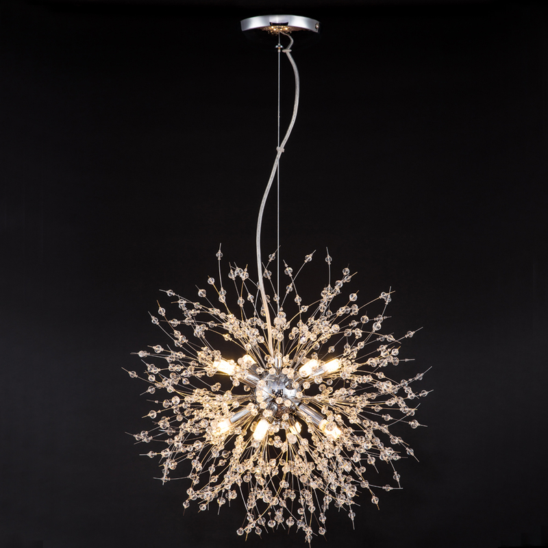LED Pendant light, Dandelion shape, it consist of crystal and iron .The light is 38CM in diameter, Use G9 Bulbs. 3000K color temperatures provide comfortable lighting, ideal for creating a relaxing and inviting environment. Perfect for modern Spaces.