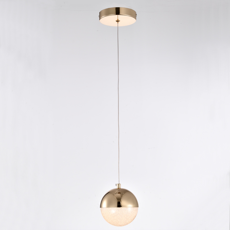 The frosted acrylic material creates a diffuse reflection of light. When illuminated, the light emitted through the sphere is soft and glare-free, fostering a warm and dreamy ambiance. Simultaneously, the metal components reflect light, adding layers of luminance and shadow, enhancing the artistic feel of the space.