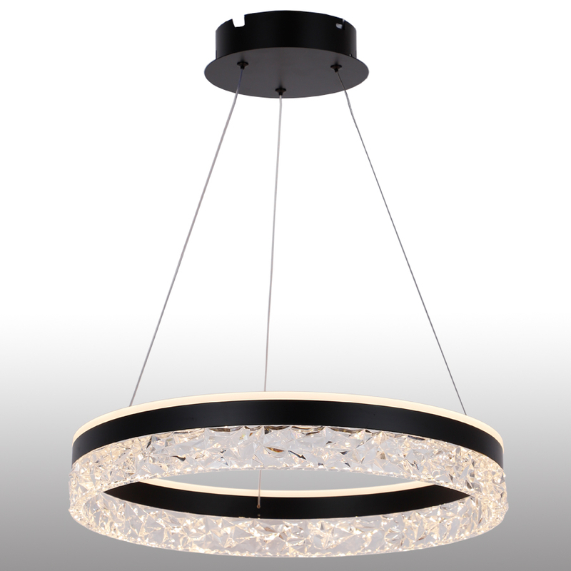 The LED acrylic chandelier features a sleek, minimalist design with contemporary appeal:
