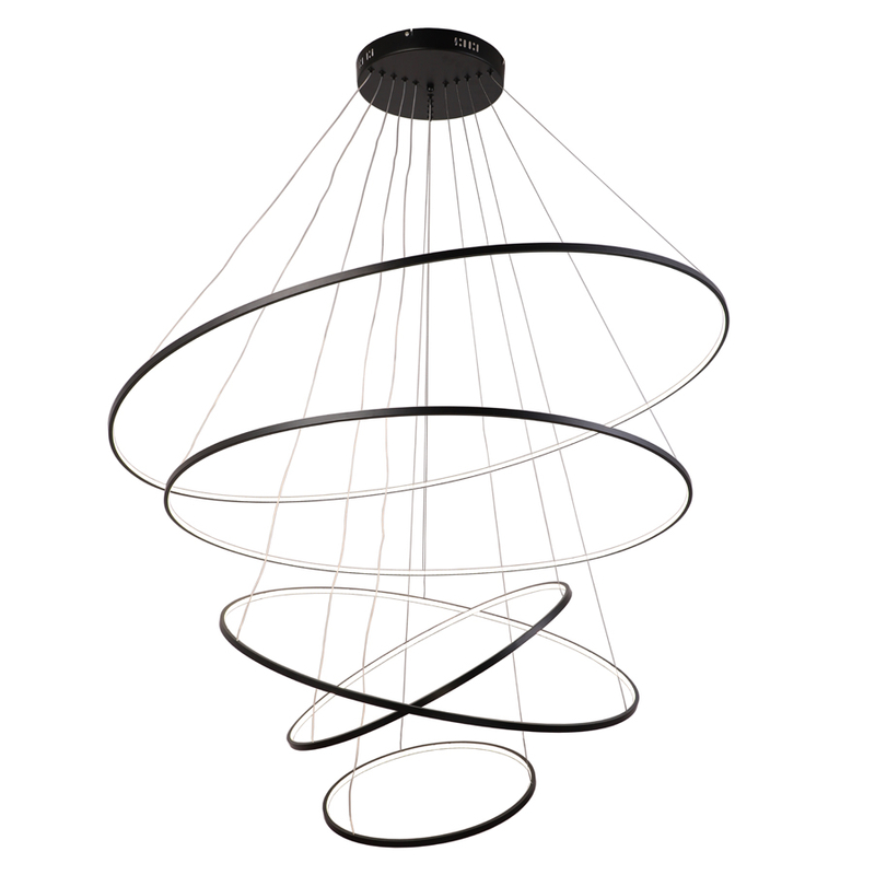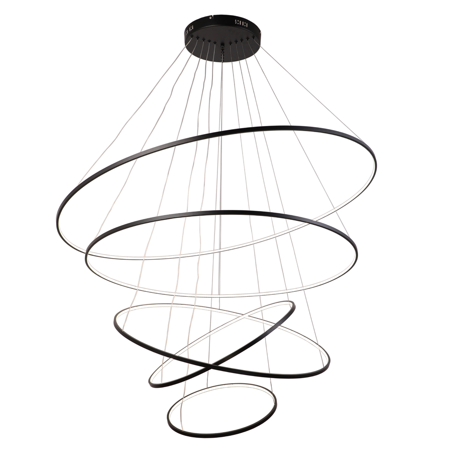 Composed of five different-sized circular structures, it presents a dynamic spatial hierarchy, breaking away from the conventional form of lamps and possessing an artistic and modern feel.