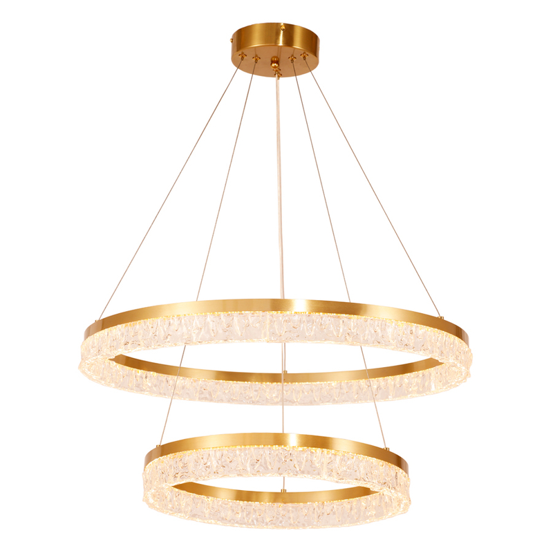 Featuring a uniquely tiered double-ring suspension, its fluid lines and layered structure create striking three-dimensional visuals. This artistic form commands attention as a captivating focal point in any interior space.