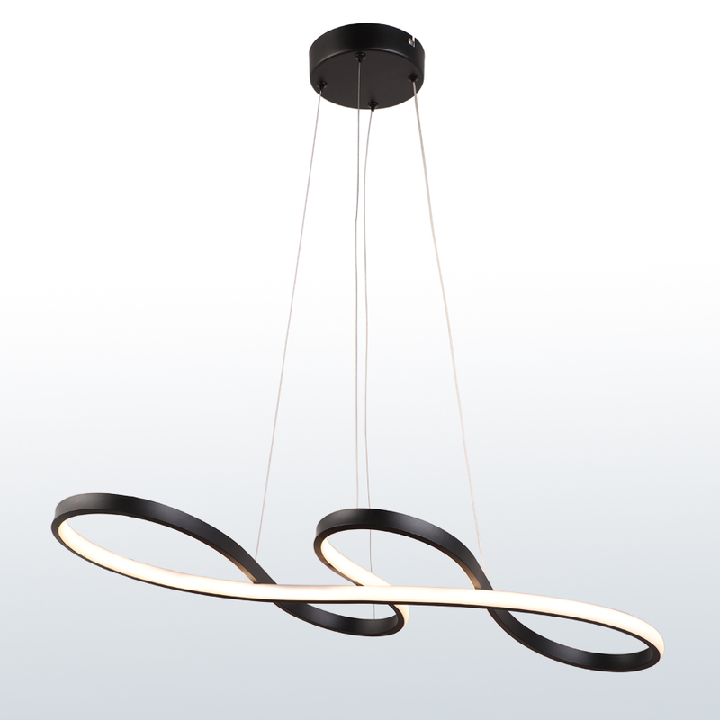 Featuring a ring-shaped design with two interlocking circular light strips, this configuration enhances the fixture’s dynamic quality and visual appeal.