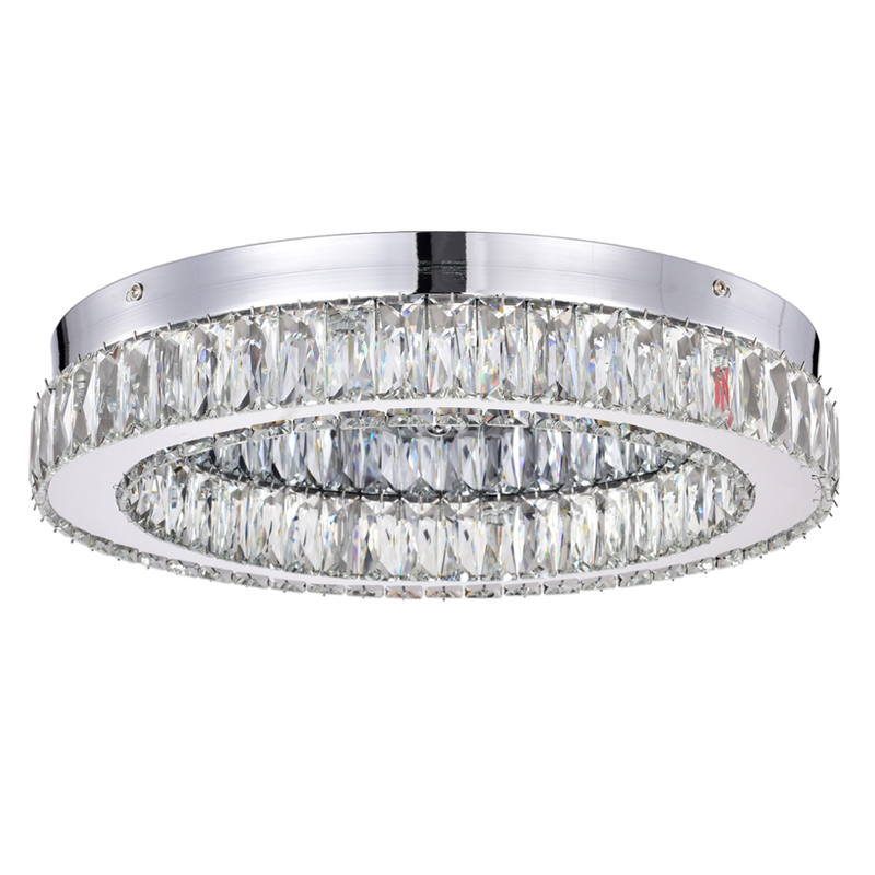 LED Ceiling light, Round shape, it consist of Metal and crystal .The light is 50cm in diameter, has a power of 25W and a luminous flux of 2000 lumens. 3000K color temperatures provide comfortable lighting, ideal for creating a relaxing and inviting environment. Perfect for modern Spaces.