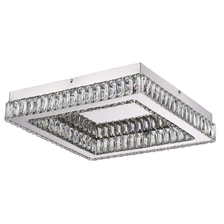 LED Ceiling light, Round shape, it consist of Metal and crystal .The light is 50cm in diameter, has a power of 25W and a luminous flux of 2000 lumens. 3000K color temperatures provide comfortable lighting, ideal for creating a relaxing and inviting environment. Perfect for modern Spaces.