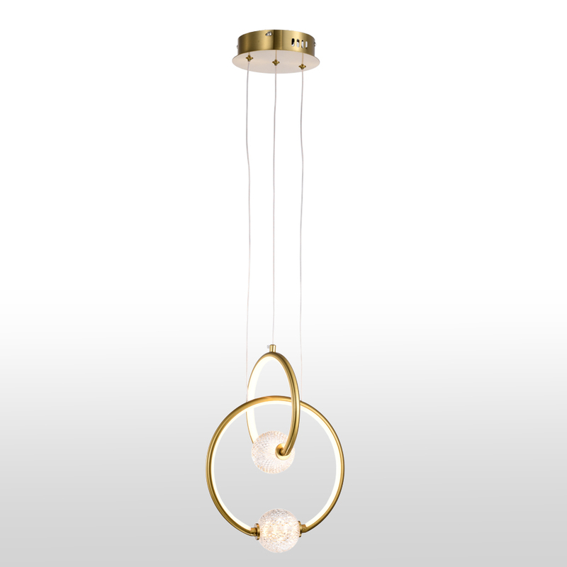 LED Pendant light, Round cricle shape, it consist of acrylic and iron .The light is 20 in diameter, has a power of 10W and a luminous flux of 700 lumens. 3000K color temperatures provide comfortable lighting, ideal for creating a relaxing and inviting environment. Perfect for modern Spaces.
