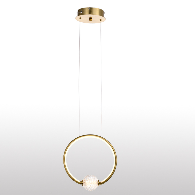 LED Pendant light, Round cricle shape, it consist of acrylic and iron .The light is 20 in diameter, has a power of 10W and a luminous flux of 700 lumens. 3000K color temperatures provide comfortable lighting, ideal for creating a relaxing and inviting environment. Perfect for modern Spaces.