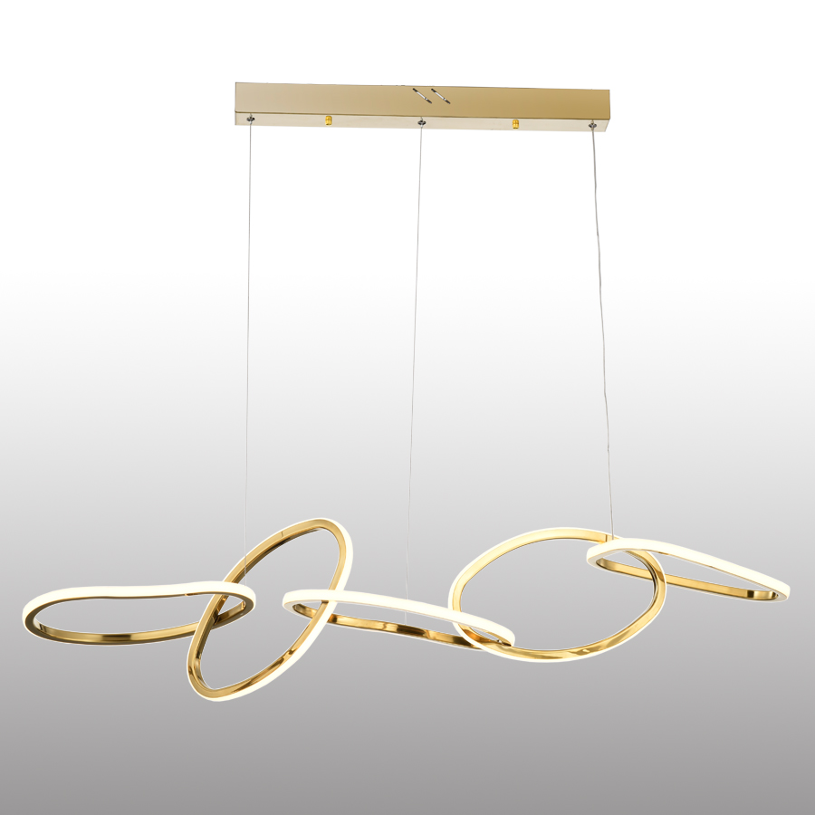 LED Pendant light, Beans shape, it consist of Stainless steel and silicone .The light is 120cm in lenghth, has a power of 65W and a luminous flux of 4200 lumens. 3000K color temperatures provide comfortable lighting, ideal for creating a relaxing and inviting environment. Perfect for modern Spaces.