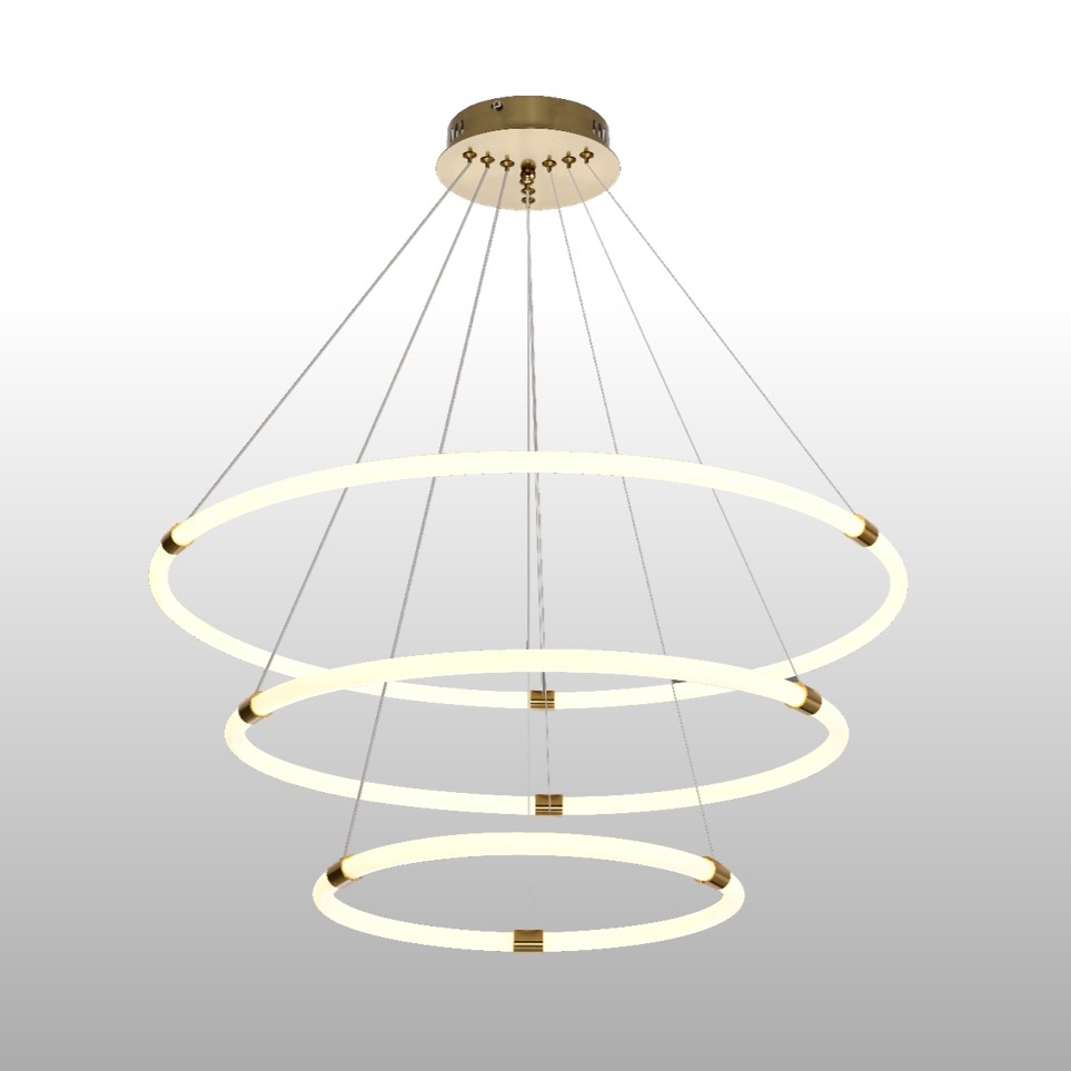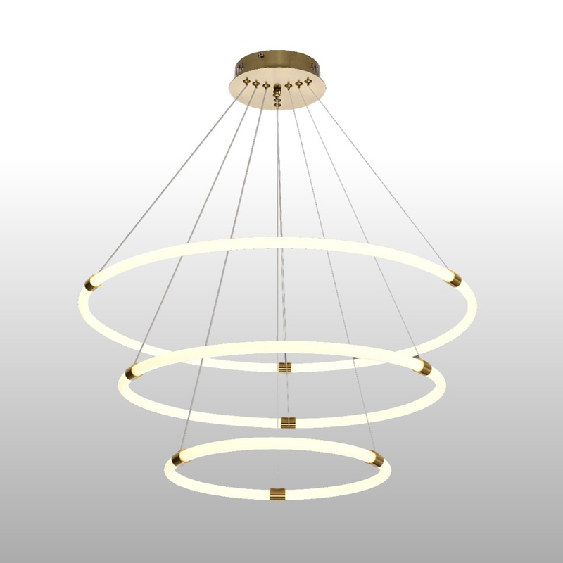 LED Pendant light, Three Circle rings, good light transmission. .The light is with 40cm,60cm,80cm in diameter, made of silicone, has a power of 80W and a luminous flux of 5000 lumens. 3000K color temperatures provide comfortable lighting, ideal for creating a relaxing and inviting environment. Perfect for modern Spaces.